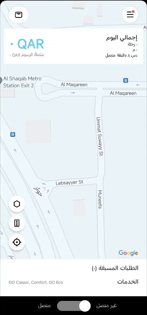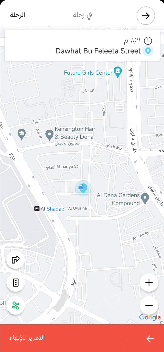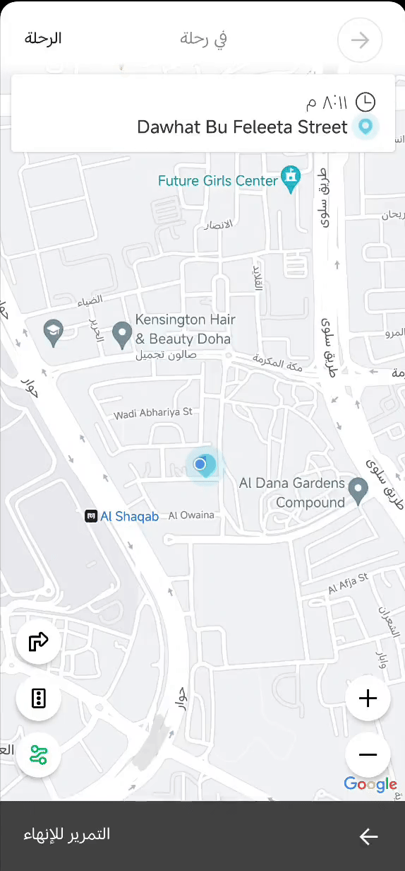 ٣. عند صعود العميل معك في المركبه الرجاء عمل سوايب لابتداء الطلب وتشغيل العداد