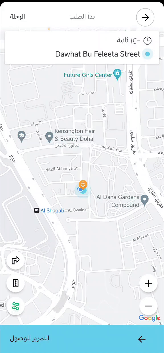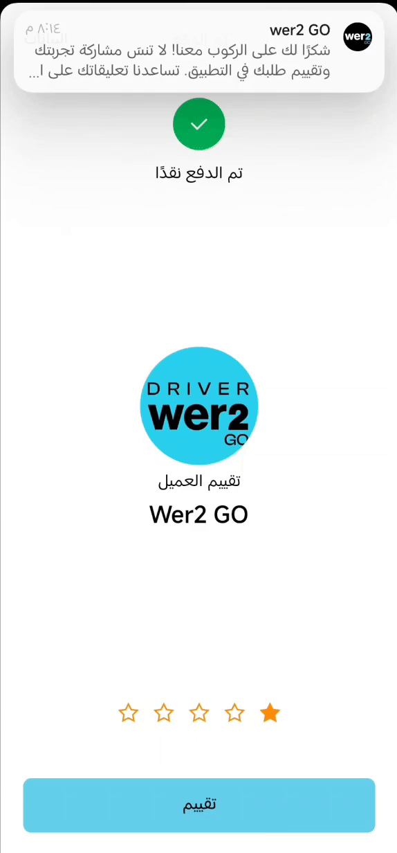 ٢. عند الوصول لمكان العميل يرجى عمل سوايب لكي يصل للعميل تنبيه بالوصول عنده