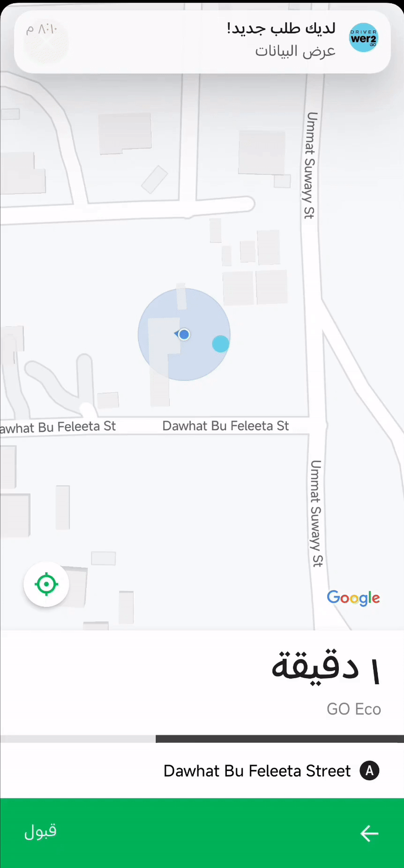 ١.عند ظهور طلب يمكنك معاينة الطلب من حيث مكان وجود العميل و ايضا مكان الوصول