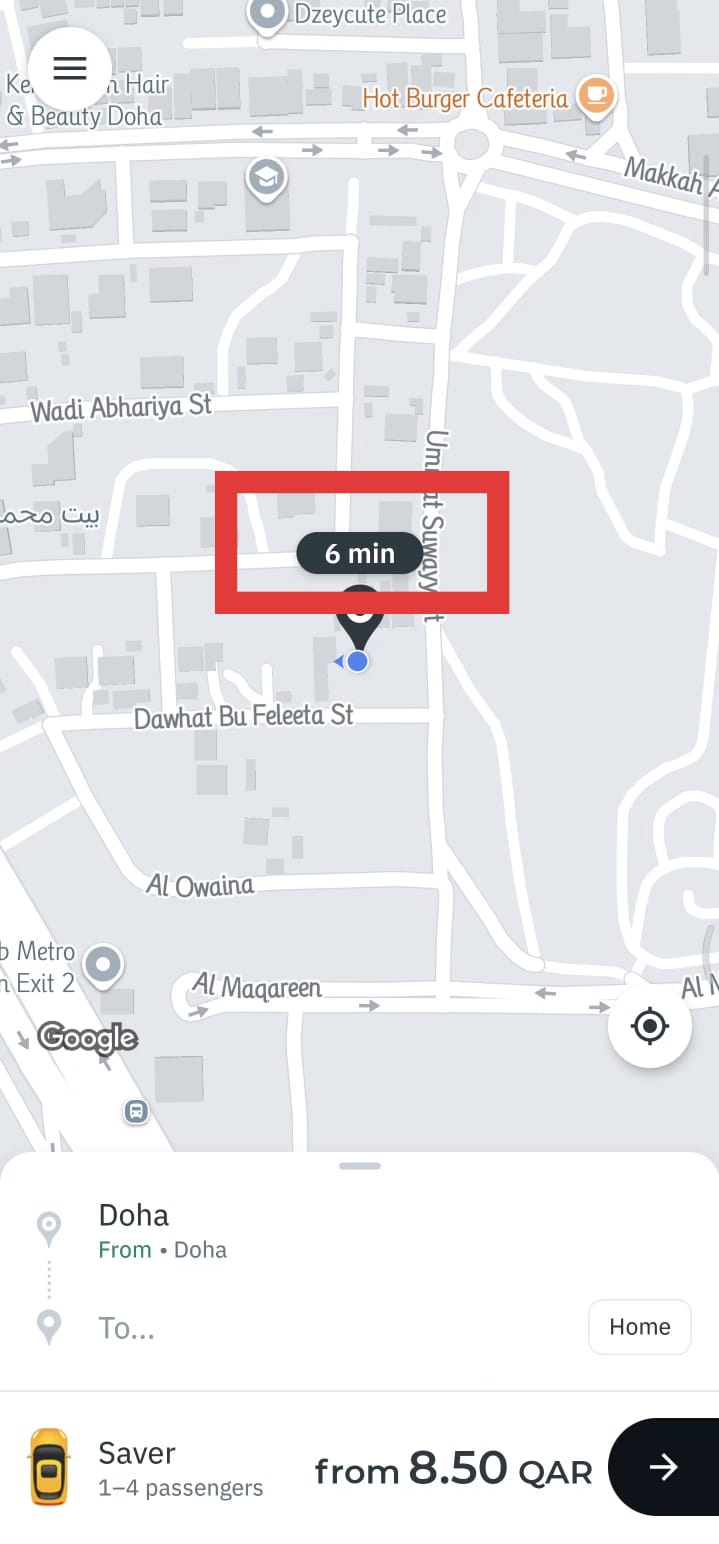 عندما تقوم بطلب الرحلة وتأكيد الحجز، يُظهر لك التطبيق وقتاً ما.