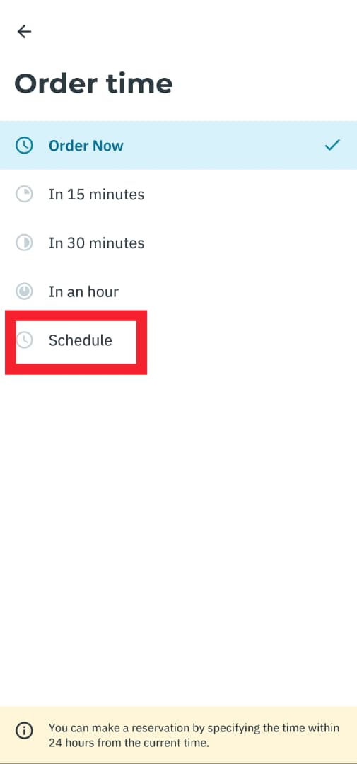 3. Click "Order Now"  and choose the time in advance you want to book